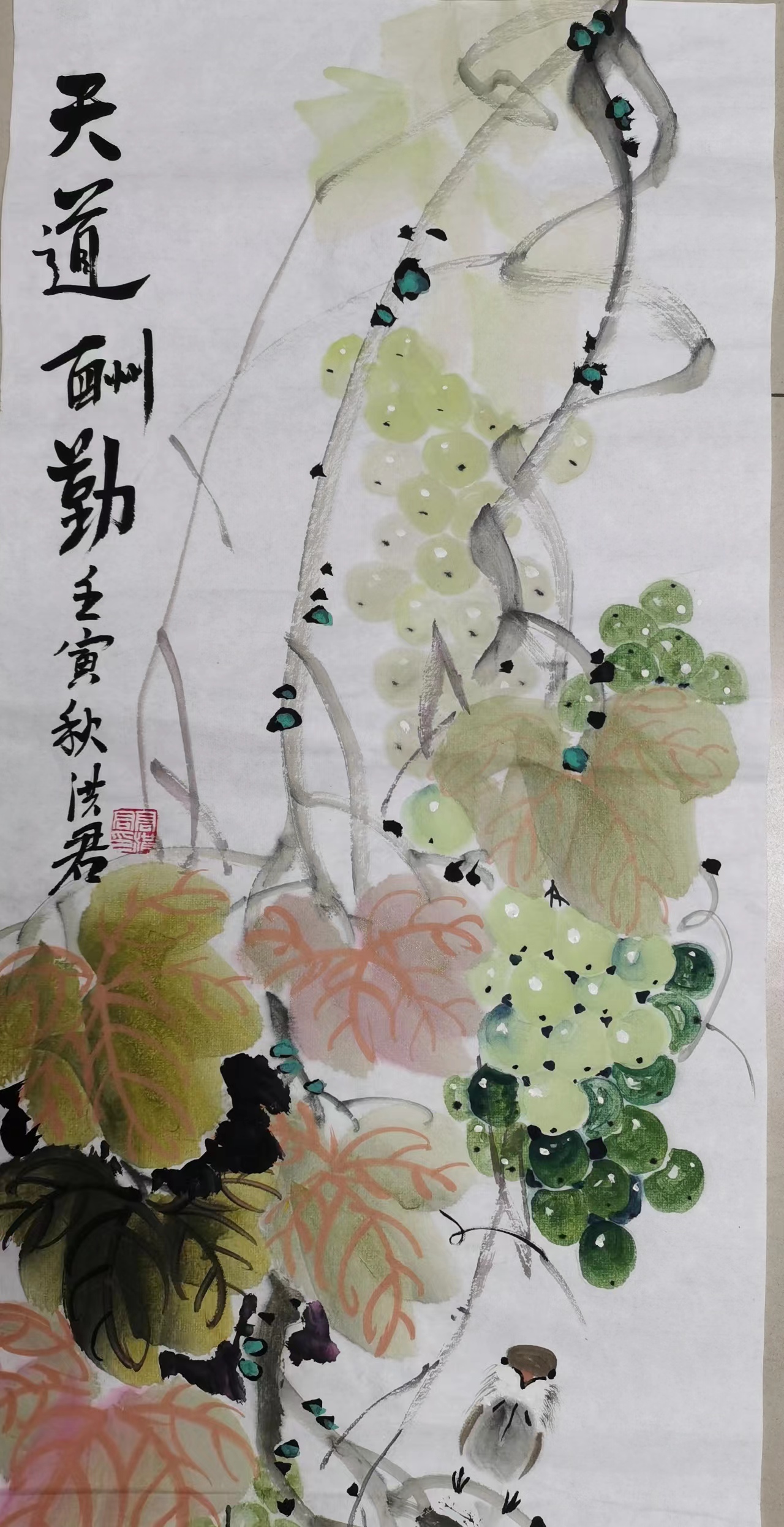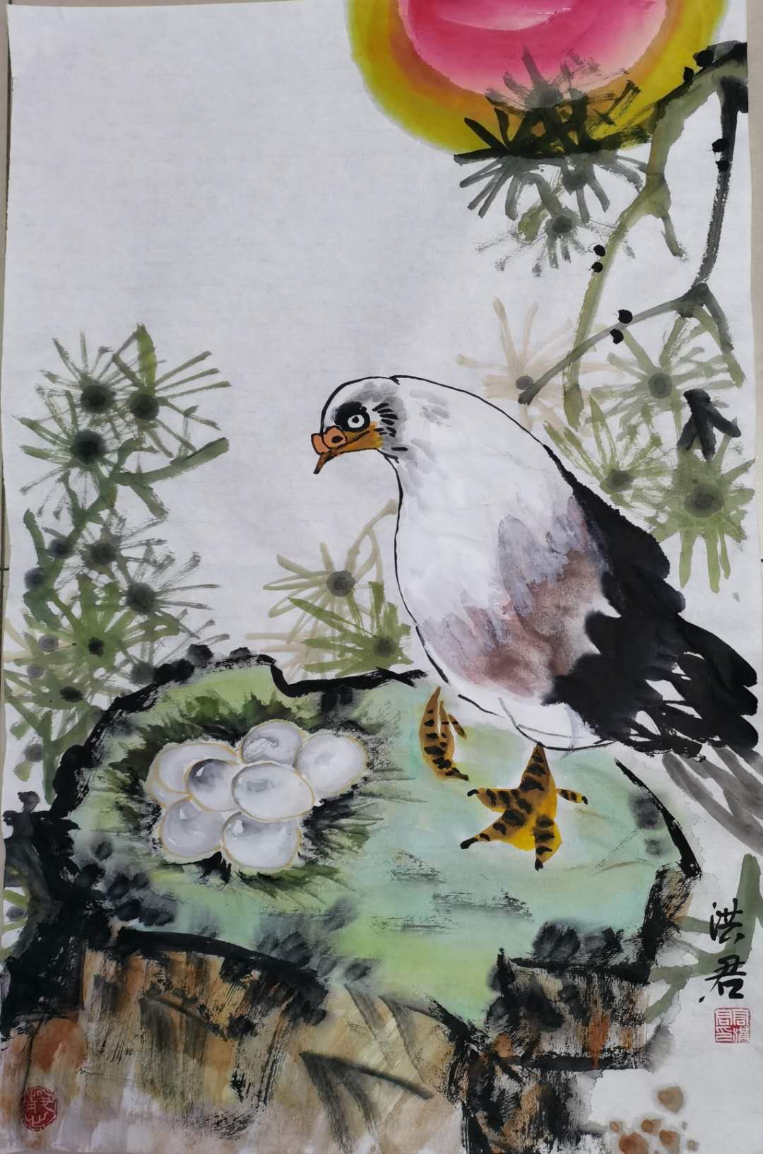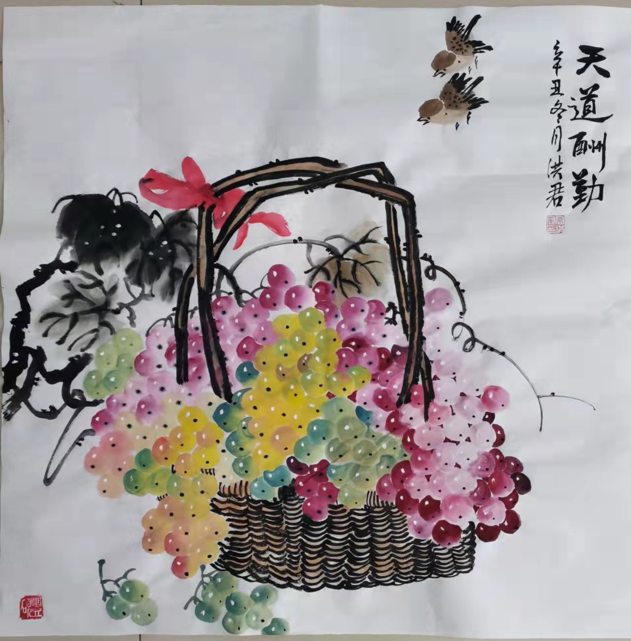 洪君 秋实累累鸟含情